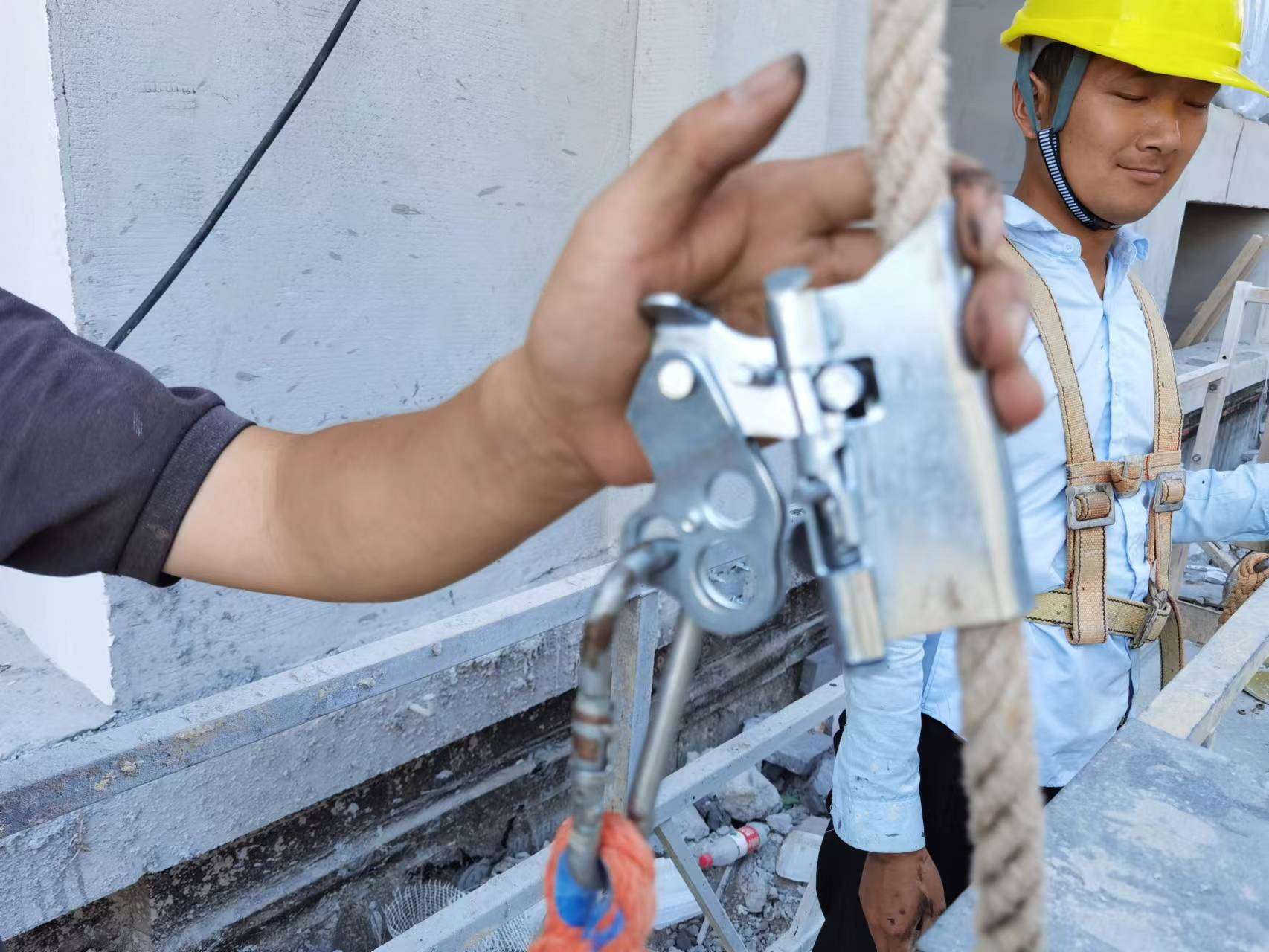 6月16日,湖北亞合建設于武大科技園青菱創新產業基地項目部組織開展了吊籃操作安全應急演練。演練旨在提高現場施工人員的安全防范意識,普及吊籃使用常識,掌握自救知識和技能,預防事故的發生,青菱項目部項目經理、甲方監理、項目施工員及安全員參加觀摩。隨著安環部一聲令下,吊籃操作安全應急演練正式拉開帷幕。外墻涂料班組、幕墻施工班組的現場施工人員在模擬施工時,發生停電手動下降,發生傾斜調整平衡,大風強對流天氣應急處置果斷處置,動作流程規范、措施得當。